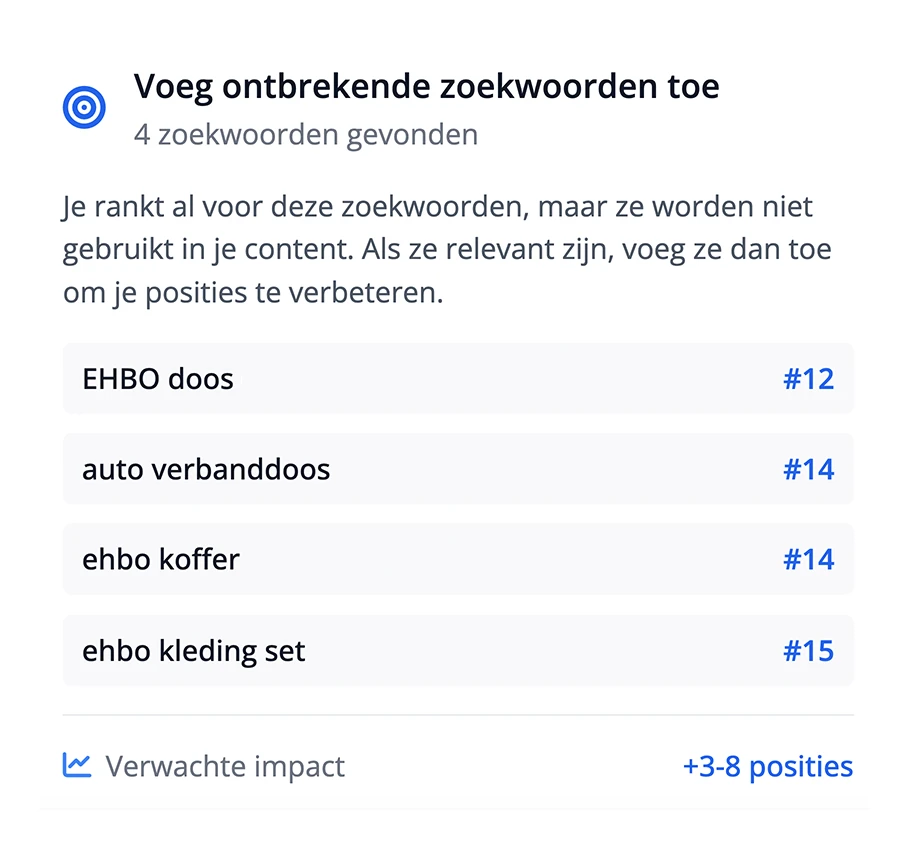 A chart alone won't get you far: that's why you'll receive actionable insights directly in your dashboard to help improve your search rankings and increase your revenue.