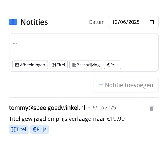 Add notes of changes and experiments of a product directly to the ranking chart, so you can easily keep track of the effects on your ranking.